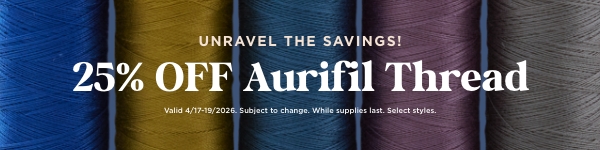 Good thread changes everything! There's a reason Aurifil is the thread quilters reach for, project after project. It’s smooth, strong, and consistent. And for three days only, it's yours at 25% OFF. Restock your favorite colors and give every WIP the thread it deserves. Don't wait—your spools are calling!