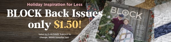 ’Tis the season to treat yourself! Cozy up with BLOCK Magazine and build your quilting library with back issues at just $1.50 EACH! Every one is packed with 10 stunning patterns, stitching stories, and expert tips to spark your creativity all winter long. If you’ve missed out on a few issues, this deal makes it easy to stock up and save. Grab your favorites now—these merry markdowns won’t last!