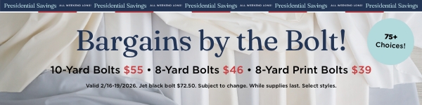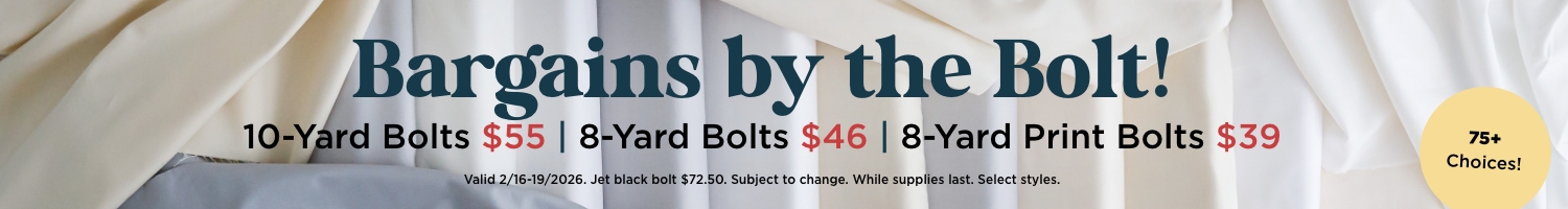 Stock up on your favorite fabrics by the bolt! Right now, you can shop through loads of bolts at a fraction of the price! Here, you’ll find 8 and 10 yard bolts in a wide variety of colors from black and green to pink and blue. Whether you’re getting an often used favorite or finding a new fabric to play with, you’ll be sure to find inspiration in this bold bolt sale!