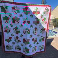 I am enjoying doing this in scrap Christmas fabrics I had on hand. Do find it necessary to trim down the seams of the smaller plates after sewing (to 1/8") to be able to turn them. I also have to stop and pivot the plates on curves and points when attaching to background fabric. I usually quilt my own projects, but this one is big and will go to long armer.