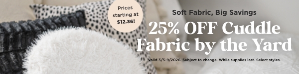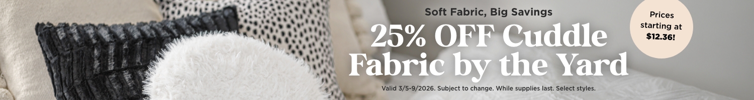 Cuddle up with some soft fabrics and some big savings! Right now, you can get Cuddle fabric by the yard 25% OFF. Here you’ll find wide Cuddle yardage in a large variety of colors like black, teal, ivory, and more. Shop through the softest fabrics around and create something you’ll be cuddling for years to come at a fraction of the price!