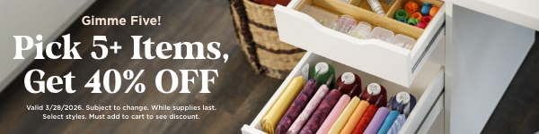 Save in a flash! From 11am to midnight today, choose five or more items from a special selection of goodies we chose just for you and save 40% on those items (must add to cart to see discount). Browse through nifty notions, pretty precuts, and terrific tools–all the things you need to keep being your fabulous quilty self! Hurry, though. When the clock strikes midnight, these deals will be gone like Cinderella's shoe.
