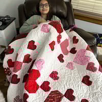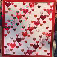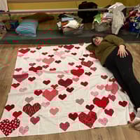 This is an amazing pattern. It’s really good for the scraps you seem to be drowning in because the hearts can be any shade or color you want. Easy to follow but still need to pay attention or you’ll find yourself ripping out a lot. I added a border and forgot to figure the new backing size needed.