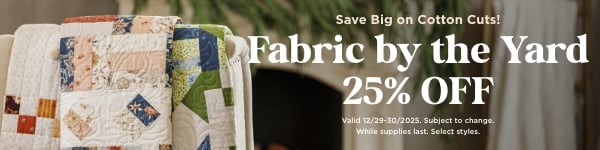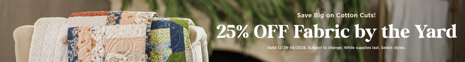 This is your sign to shop now. For just 2 days, we’re slashing prices on fabric by the yard—25% OFF while supplies last! With so many prints included, now’s the moment to grab those “been eyeing it” fabrics before they disappear. Fill your cart with yardage and dream about all the quilts you can finish in the new year. When the clock runs out, so do the savings—so don’t wait!