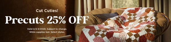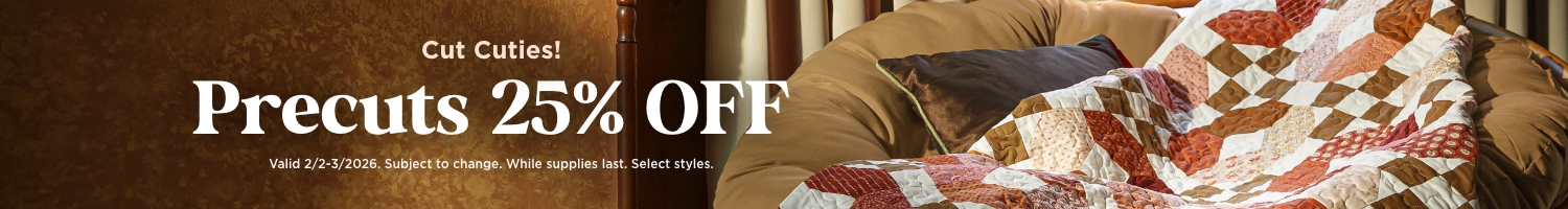 Take the stress of matching fabrics out of your project planning! Browse through these precuts now at 25% OFF. Precuts are great for patterns and are all-around fantastic to keep on hand for any of your last minute needs. From fat quarter bundles to layer cakes, precuts are perfect for sewing on the go, or whipping up a quick quilt!