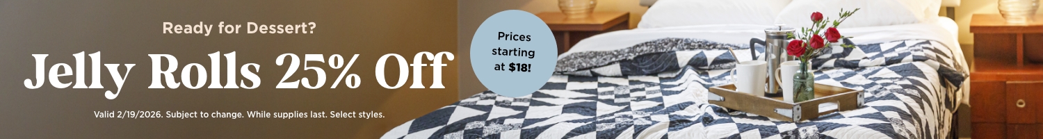 Satisfy your quilting sweet tooth with a great deal on jelly rolls! Right now you can get the perfect bite of fabric 25% OFF. These jelly rolls come in a wide variety of colors, styles, and designs, so finding something that inspires you is easy! Shop now, because these deals are too sweet to pass up!