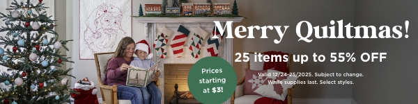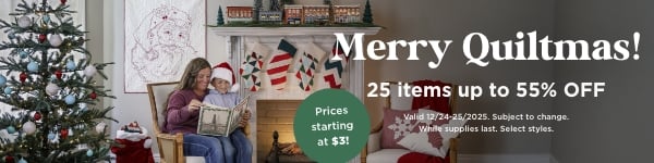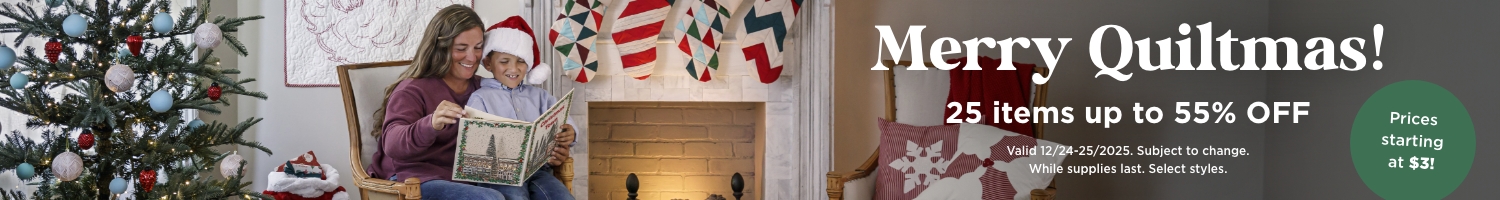 Merry Quiltmas from us to you! We've wrapped up a special selection of 25 items at up to 55% OFF. Even if you're on the nice list, Santa doesn't always come through. Instead of relying on the man in red, reach into this quilted sack of goodies and pick out something you want. Grab precuts, yardage, organizers, tools, and more!