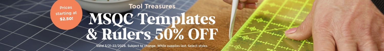 The best day of the year is finally here; it’s National Quilting Day! Bring in the NQD cheer with MSQC templates & rulers 50% OFF. Whether you're perfecting your patchwork or shaping stunning patterns, these tools help make every cut and stitch a breeze. From straight edges to intricate designs, let these rulers and templates be the key to unlocking your creativity this National Quilting Day!