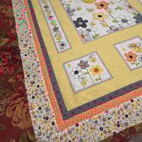 Pieced panel quilt kit contains a pattern by Pine Tree Country Quilts and Sweet Bees fabric for the top and binding, by Susy Bleasby of the World of Susybee for Clothworks. Backing sold separately, 3 1/2 yards needed. We recommend Sweet Bees - Bee Kind Yellow Yardage. Matches perfectly with the Sweet Bees Pillowcase Kit.