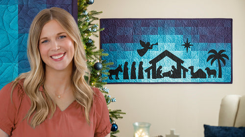Ombre fabric is the secret to creating the dramatic sky in the Nativity Glow Wall Hanging. Using the Missouri Star O Holy Night Template Builder Set, you can create a quilted and appliqued work of art! Sample project made with Gelato Ombre - Teal Purple yardage from Maywood Studio, and black Kona Cotton from Robert Kaufman Fabrics.