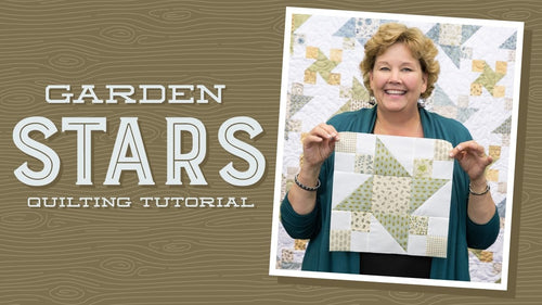 Make a starry garden using soft colors and 5” squares. Adding easily pieced sashing deepens the design and enhances the beauty of the quilt! Sample quilt made with fabrics from the Garden Notes collection by Kathy Schmitz for Moda.
