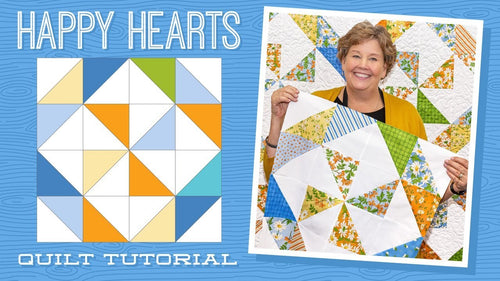 Do half-square triangles make your heart happy? Piece together a set of cheerful pinwheels surrounded by an array of half-squares triangles that form a unique design. When you're finished, add even more of what you love with a set of appliquéd hexagon flowers smack dab in the center. Before you start sewing, gather up 1 package each of 10" print squares and 10" background squares plus a couple yards for the borders. Stitch it up and find your happy place!