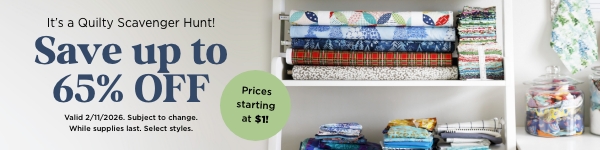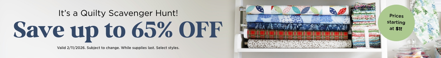 Do you want all the goodies of a quilty scavenger hunt without any of the work? You got it! You don't have to solve any clues or even leave your comfy chair. Just hunt through these fantastic deals on fabric, notions, and more at up to 65% OFF! You love to sew, and we love to help you save on the things you need! Check these deals off your list and win at quilting!