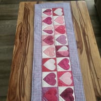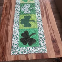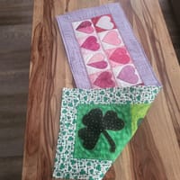 I used the green and pink fabric I purchased from Missouri Star, to make a double sided table runner for my daughter It covers St. Valentine's Day & St Patrick's, Day. Just flip it over to change holidays. Quilted both sides separately, I then sewed right sides together and turned the runner before top stitching. So much fun.