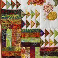 I had some left over Kaffe Fassett floral fabrics and this little project made it a perfect fit. I loved the use of several techniques and the hand stitching was a nice addition.