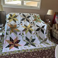 Its an easy enough pattern, although i am not sure if you should cut to size the large stars. It doesnt say to or to what size but in my math's head 4x6.5 squares =26 inches, - minus seams 1.5 ins =24.5 x 3 =72.5 plus sashing and borders, Made my quilt top 92 inches.... looks great though.