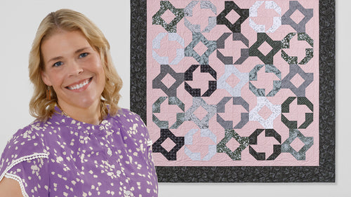 Here's a quilt that has the breezy, carefree feeling of a summer day! The layer-cake friendly Summer Sisters quilt from Missouri Star is made with simple shapes such as squares and half-square triangles. Sample quilt made with fabrics from the Tranquility collection by FIGO Fabrics and Colorworks Premium Solids-Romance by Northcott.
