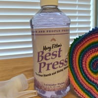 This spray starch works well for ironing fabric so it's straight and flat. I have used it with two layers that I'm getting ready to sew and it gives it a little grip. Spraying with a scent makes ironing a joy (really) and I will do my ironing while watching a movie to enjoy the crisp scent. Nothing like lavender to lay your head on at night after quilting all day, especially if you just made a pillowcase!