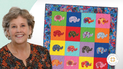 It’s a trunk show! Adorable elephants proudly lift their trunks in this LIttle Friends quilt pattern by Missouri Star. Start with just one package each of solid and print 10” squares to make the main part of this easy block quilt. Apply the colorful appliquéd elephants using Missouri Star Sew Light Fusible Adhesive, add a border, backing and binding, and you’ll have a 47” x 56-½” finished quilt in no time!