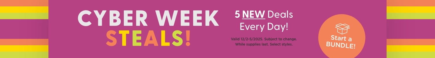 Cyber Monday is not enough! We're offering a week of cyber steals! Every day through Friday, we'll have five new and unique deals to quench your cyber shopping thirst. Come back every day to find fantastic deals on fabric, notions, and sew much more! (Remember that you can bundle a week's worth of purchases and pay just once for shipping.) Enjoy the ease and convenience of cyber shopping as you browse from the comfort of your couch!