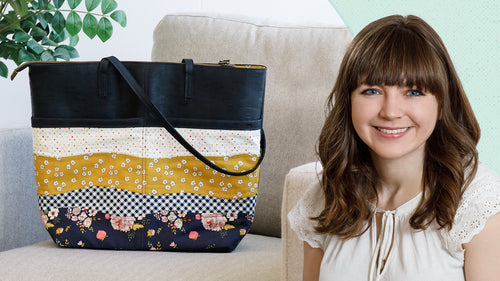 Are you ready to make a fashionable tote that is uniquely “you”? This Sallie Tomato kit for the Miranda Tote allows you to use any fabric that matches your style. The main print fabric and lining are not included in the kit. You get everything else you need to create your own Miranda Tote: pattern, midnight cork contrast fabric, fusible interfacing, sew-in foam, zipper tape with nylon coil, zipper pull, zipper cord end, and bag feet. Sample shown made with fabrics from the Bloomberry collection by Minki Kim for Riley Blake Designs.