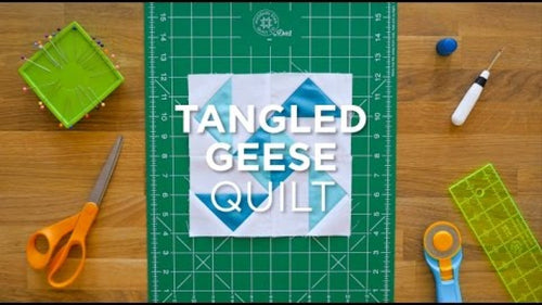 Our silly geese have been blown off-course and ended up in a tangle as they try to navigate their way through this charming quilt made using 2.5” strips.