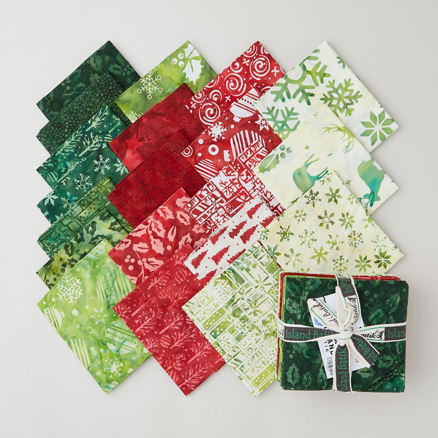 We're trimming the table with a trio of holiday projects: Four placemats, four napkins, and one fabulous table runner. This charming tablescape is made with Festive Wishes Batiks by Island Batik, easy piecing, and a variety of decorative trims.