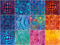 The fiery reds and oranges and cool blues and purples add to the magic of these 5” squares.