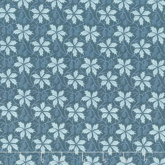 Light blue leaves and berries on a blue background. Don’t be blue! Bleu De France by French General for Moda Fabrics is a lovely fabric collection inspired by the popular designs of 19th century France. This collection features flowers, birds, and leaves. Be transported to 19th century France with this beautiful collection!