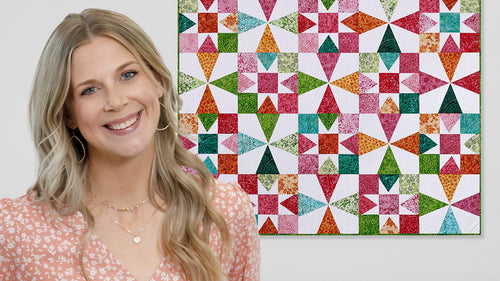 Stars and pinwheels put a fun spin on this quilt! The Missouri Star pattern provides instructions for making large 17" blocks that come together to make the quilt quickly. Fat quarter friendly! Sample quilt made with fabrics from the Meadow Sunshine collection by Kathy Engle for Island Batik.