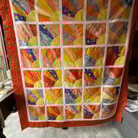I really enjoyed making this pattern. My son loves orange so I have been collecting orange fabrics for awhile. I added an extra row to make the quilt longer. Can’t wait til it comes back from the longarmer!
