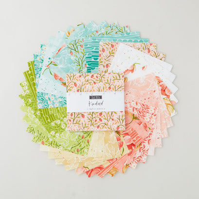 A charm pack of flowers, fruit, and more. Bring beautiful flower power to your projects! Kindred by 1 Canoe 2 for Moda Fabrics is a sweet fabric collection full of spring motifs. This collection features flowers, geometric shapes, strawberries, and more. Pair these fabrics with coordinating solids to make these flowers pop!