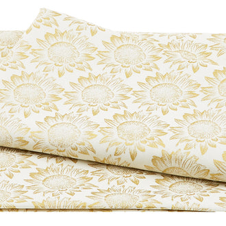 Golden sunflowers on a white background. This collection has the Midas touch! Simply Gold by Studio E is a beautiful fabric collection full of all things gold. This collection features leaves, sunflowers, dots, and more. Anything made with these fabrics is sure to bring home the gold! Sold by 2 yard cuts.