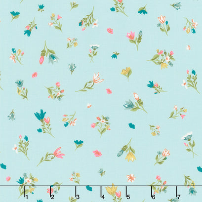 Lovely and colorful flowers tossed on a misty blue background. Inspiring, uplifting, heartwarming -- we could go on and on about how this beautiful collection makes us feel. Songbook A New Page by Fancy That Design House is the ideal collection for the spiritual sewist, floral fabric fanatics, or anyone who simply loves pretty fabric. In short, this Moda Fabrics collection has something for everyone! Come take a closer look at the charming, colorful flowers, hymn titles written in elegant script, dainty butterflies, and more of Songbook A New Page.