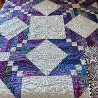 Create a striking strip quilt that features four lovely eight-pointed stars. They come together in a snap with the incredibly useful Binding Tool, which also comes in handy when you're finishing your quilt! Begin with a roll of your favorite 2 1/2" strips, add 3 yards of background fabric, and soon you'll find yourself starry eyed with the results!