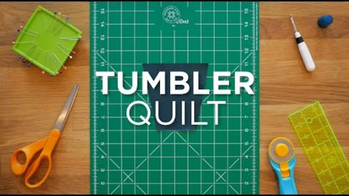 All you need to make this sweet quilt is a small tumbler template and four packs of 5” squares. Nudge every other row over a bit, and they will line up like little toy soldiers!